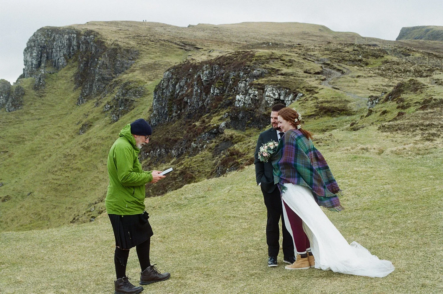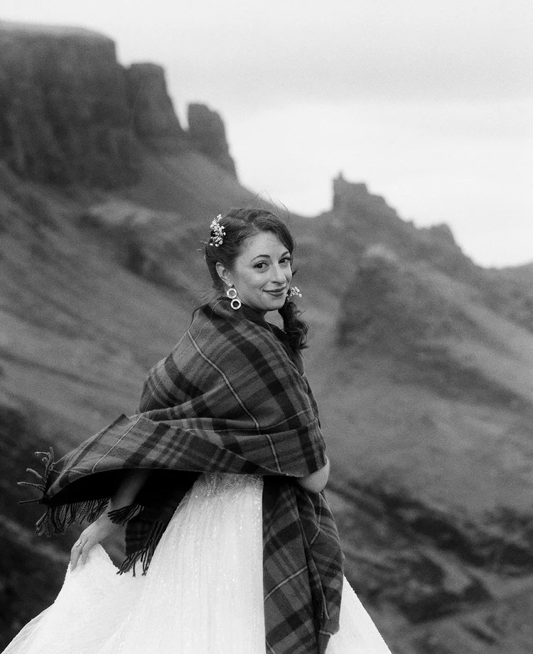 “It’s hard to choose a favorite moment from our elopement day, but it had to be standing on the Trotternish ridge, vowing my heart to my husband with the gorgeous views of the Quirang. If the wind hadn’t been stealing my breath away, the views would have! It was raw and wild and I can’t wait to return again.”